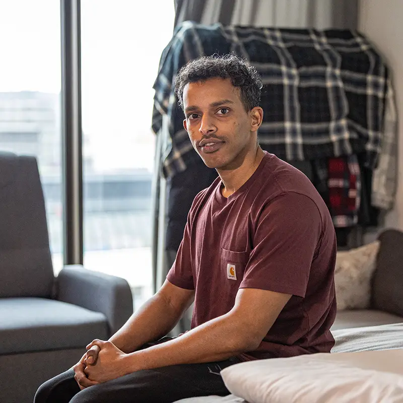 “Toen ik voor het eerst in Amsterdam kwam, was ik bang,” vertelt Abdulkadir. “Het is een grote stad en ik was alleen. Ik wist niet waar ik moest beginnen.” Zoals veel statushouders verbleef hij eerst in een asielopvangcentrum. Later, nadat hij een verblijfsvergunning kreeg, deed hij mee aan een logeerregeling en woonde hij via Takecarebnb bijna vijf maanden bij een Nederlands gastgezin. Aanvankelijk twijfelde hij. “Ik zag de aankondiging op kantoor, maar ik was niet meteen geïnteresseerd. Pas toen het Centraal Orgaan opvang asielzoekers contact met me opnam en ik met mijn familie had overlegd, ging ik akkoord.”
